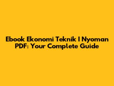 Ebook Ekonomi Teknik I Nyoman PDF: Your Complete Guide