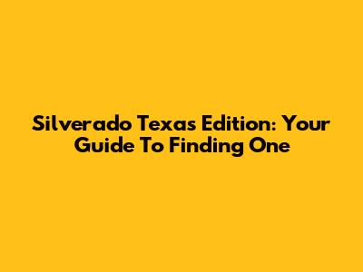 Silverado Texas Edition: Your Guide To Finding One