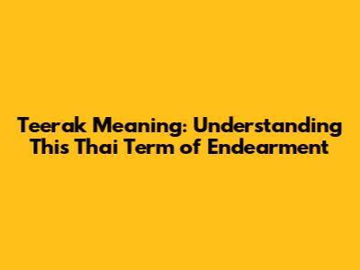 Teerak Meaning: Understanding This Thai Term Of Endearment
