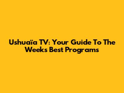 Ushuaïa TV: Your Guide To The Week's Best Programs