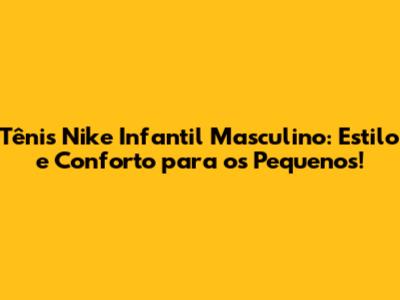 Tênis Nike Infantil Masculino: Estilo E Conforto!