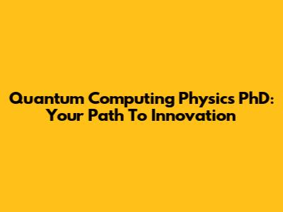 Quantum Computing Physics PhD: Your Path To Innovation