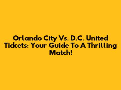 Orlando City Vs. D.C. United Tickets: Your Guide To A Thrilling Match!