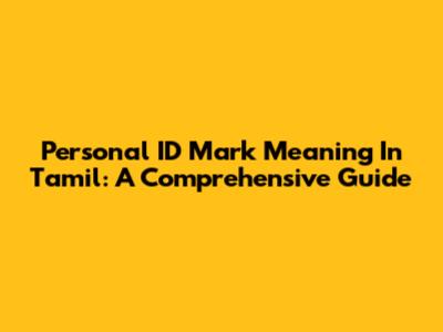 Personal ID Mark Meaning In Tamil: A Comprehensive Guide