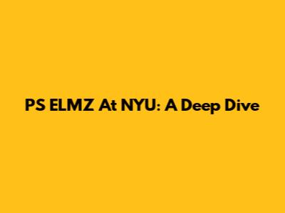 PS ELMZ At NYU: A Deep Dive