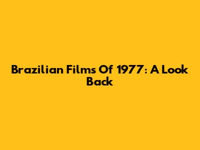 Brazilian Films Of 1977: A Look Back