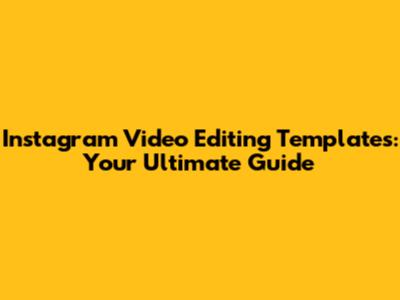 Instagram Video Editing Templates: Your Ultimate Guide