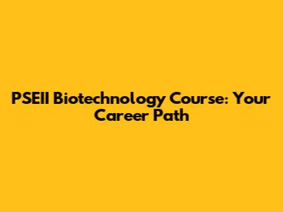 PSEII Biotechnology Course: Your Career Path