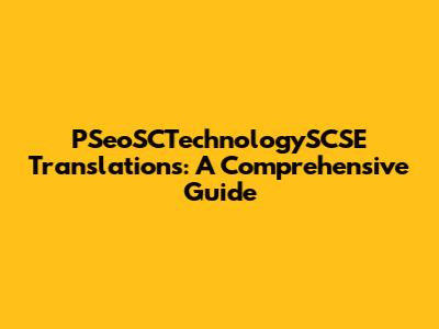 PSeoSCTechnologySCSE Translations: A Comprehensive Guide