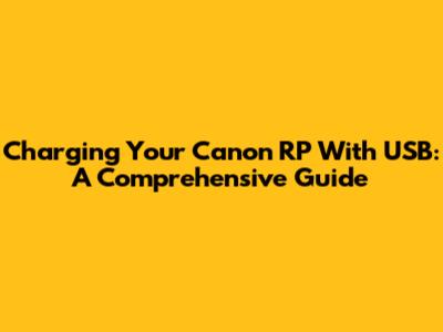 Charging Your Canon RP With USB: A Comprehensive Guide