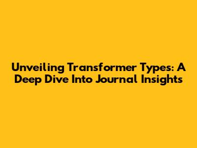 Unveiling Transformer Types: A Deep Dive Into Journal Insights