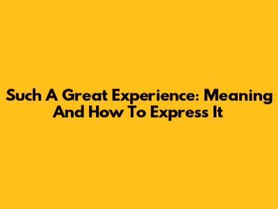 Such A Great Experience: Meaning And How To Express It
