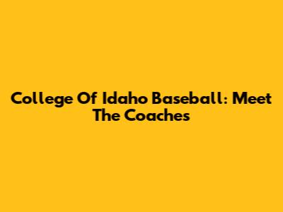 College Of Idaho Baseball: Meet The Coaches