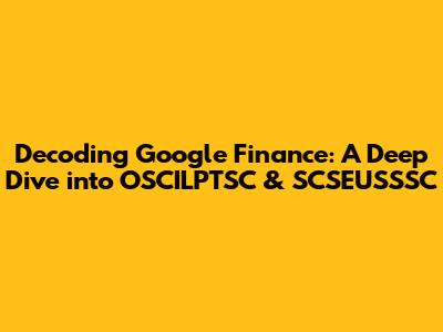 Hey guys! Ever wondered how to navigate the complex world of finance? Specifically, have you been curious about Google Finance and how it can help you understand the stock market? Well, you're in the right place! We're going to break down the ins and outs, focusing on some interesting tickers: OSCILPTSC and SCSEUSSSC. This article will be your go-to guide, offering practical insights and easy-to-understand explanations. Get ready to level up your financial knowledge!