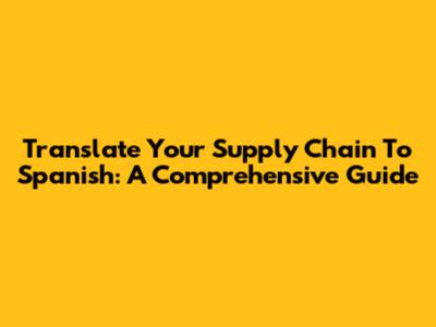 Translate Your Supply Chain To Spanish: A Comprehensive Guide
