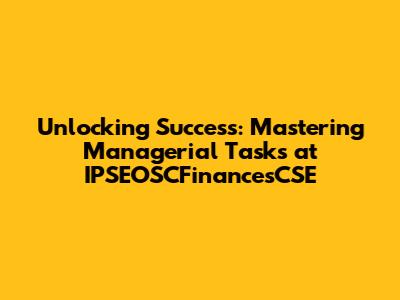 Hey there, future leaders and current managers! Today, we're diving deep into the world of managerial tasks, specifically within the dynamic environment of IPSEOSCFinancesCSE. Whether you're a seasoned pro or just starting your journey, understanding and excelling in these tasks is crucial for driving success. So, let's break down the essential elements that define a high-performing manager in this context. We'll explore the core responsibilities, effective strategies, and the skills you need to not just survive but thrive. It's time to level up your game, guys!