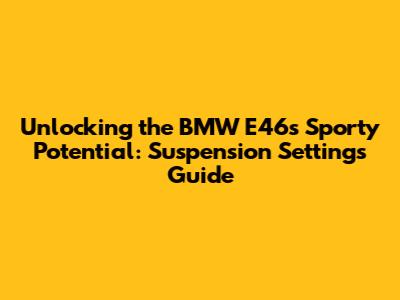 Hey there, car enthusiasts! Ever wondered how to transform your BMW E46 from a smooth cruiser into a corner-carving machine? The secret lies in understanding and optimizing your sport suspension settings. This guide is your ultimate companion, diving deep into the world of E46 suspension, helping you dial in the perfect setup for your driving style and the roads you love. We'll cover everything from the basics to advanced tweaks, ensuring you get the most out of your iconic Bavarian beauty. Buckle up; let's get started, guys!