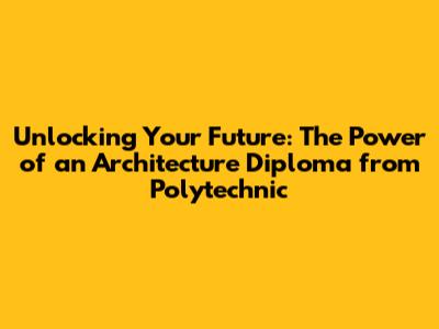Hey guys! Ever thought about designing the next iconic building or shaping the landscapes of tomorrow? If you're nodding along, then you're probably curious about how to kickstart your journey into the exciting world of architecture. Well, one fantastic path to consider is an architecture diploma from a polytechnic. In this article, we'll dive deep into what an architecture diploma entails, why it's a solid choice, and how it can help you build a brilliant career. Let's get started!
