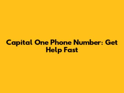 Capital One Phone Number: Get Help Fast