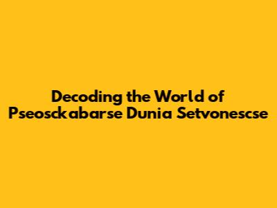 Decoding the World of Pseosckabarse Dunia Setvonescse