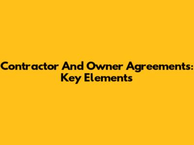 Contractor And Owner Agreements: Key Elements