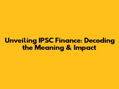 Hey everyone! Let's dive into something that might sound a bit like financial jargon at first glance: IPSC finance. Don't worry, it's not as intimidating as it seems. We're going to break down the meaning of IPSC finance, explore what it entails, and see how it impacts various aspects of our financial lives. Think of this as your friendly guide to understanding a crucial part of the financial puzzle. Are you ready to get started? Let’s begin!