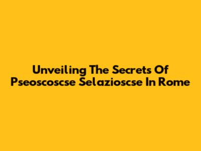 Unveiling The Secrets Of Pseoscoscse Selazioscse In Rome