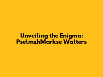 Unpacking the Mystery: Who is PselmzhMarkse Walters?