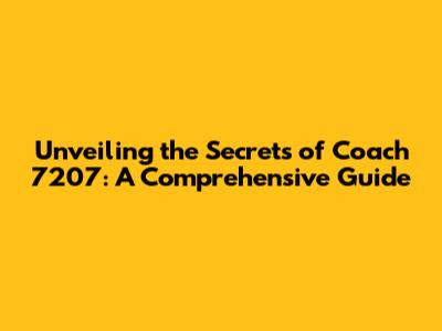 Hey guys! Ever heard of Coach 7207? Well, if you haven't, you're in for a treat! This article is all about diving deep into the world of this unique concept. We're going to explore what makes it tick, why it's important, and how it might just change the way you think about things. Get ready to have your mind blown! This isn't just a surface-level overview; we're going to dig into the nitty-gritty details, analyze its core components, and even speculate on its future impact. So, buckle up, because we're about to embark on a thrilling journey of discovery! The concept of Coach 7207 isn't something that's instantly understood. It requires a bit of unpacking, a dash of curiosity, and a willingness to explore the unknown. But trust me, the effort is well worth it. By the end of this guide, you'll not only understand what Coach 7207 is all about, but you'll also be equipped with the knowledge to discuss it intelligently, apply its principles to your own life, and maybe even inspire others. We'll be covering its historical context, key features, and future possibilities. The world of Coach 7207 can be complex, and we'll break it down into manageable parts. We'll explore its origins, its evolution, and its current state, providing you with a complete and detailed understanding. So, grab a cup of coffee, settle in, and prepare to become an expert on Coach 7207.