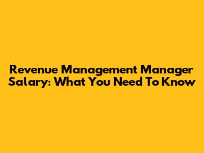 Revenue Management Manager Salary: What You Need To Know
