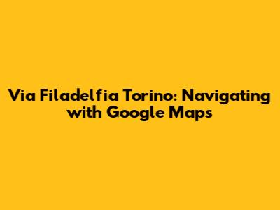 Hey guys! Ever found yourself scratching your head trying to figure out the best way to get somewhere new? Well, if you're ever heading to Via Filadelfia in Turin, Italy, you're in luck! Using Google Maps can seriously make your journey a breeze. This guide is all about how to navigate Via Filadelfia efficiently, ensuring you reach your destination without a hitch. We'll dive into everything from getting directions to exploring nearby points of interest, so you can make the most of your trip. Let's get started!
