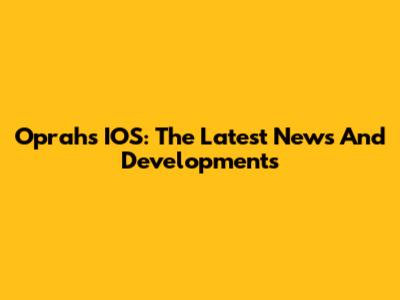 Oprah's IOS: The Latest News And Developments