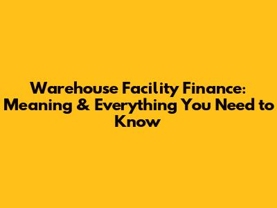 What is Warehouse Facility Finance?