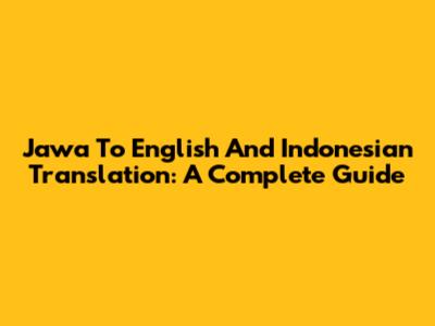 Jawa To English And Indonesian Translation: A Complete Guide