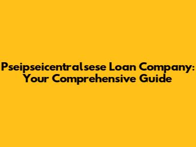Hey guys! Are you looking for financial solutions and stumbled upon the term "Pseipseicentralsese loan company"? It sounds a bit complicated, doesn't it? Well, you're not alone! This guide is here to break down what you need to know about these types of loan companies. Whether you're an entrepreneur seeking capital, an individual needing a personal loan, or just curious about the financial landscape, understanding the ins and outs of Pseipseicentralsese loan companies can be incredibly beneficial. So, let's dive in and unravel this topic together!