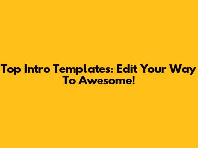 Top Intro Templates: Edit Your Way To Awesome!