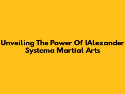 Unveiling The Power Of IAlexander Systema Martial Arts