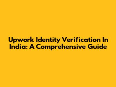 Upwork Identity Verification In India: A Comprehensive Guide